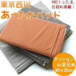 西川あったかパットクッションor足元用 トレたま・日経MJなど話題沸騰 価格: 4,095円 レビュー評価:0.0 レビュー数:0 入荷のタイミングにより、メッシュのパターン・お色が変わります。 サイズ <中芯>45×35cm <カバー>47×37cm カバー 表地:ポリエステル100% 裏地:ポリエステル65%綿35% 中芯 ウレタンフォーム ポリプロピレンエアキャップ 発泡ポリエチレン 製造 日本製 取扱い カバーは、取り外してお洗濯して頂けます が、中芯はお洗濯ができません。 ご使用方法 ・すわっている時の座面や足元など特に冷え込む部分に敷くと効果的です。 ・あったかパッドは、断熱層と空気層(エアキャップ)が体温を利用して蓄熱・対流させ、身体との接触面が早く暖まる仕組みです。 ・ご使用になる場所の室温・気温等により暖 Supported by 楽天ウェブサービス |